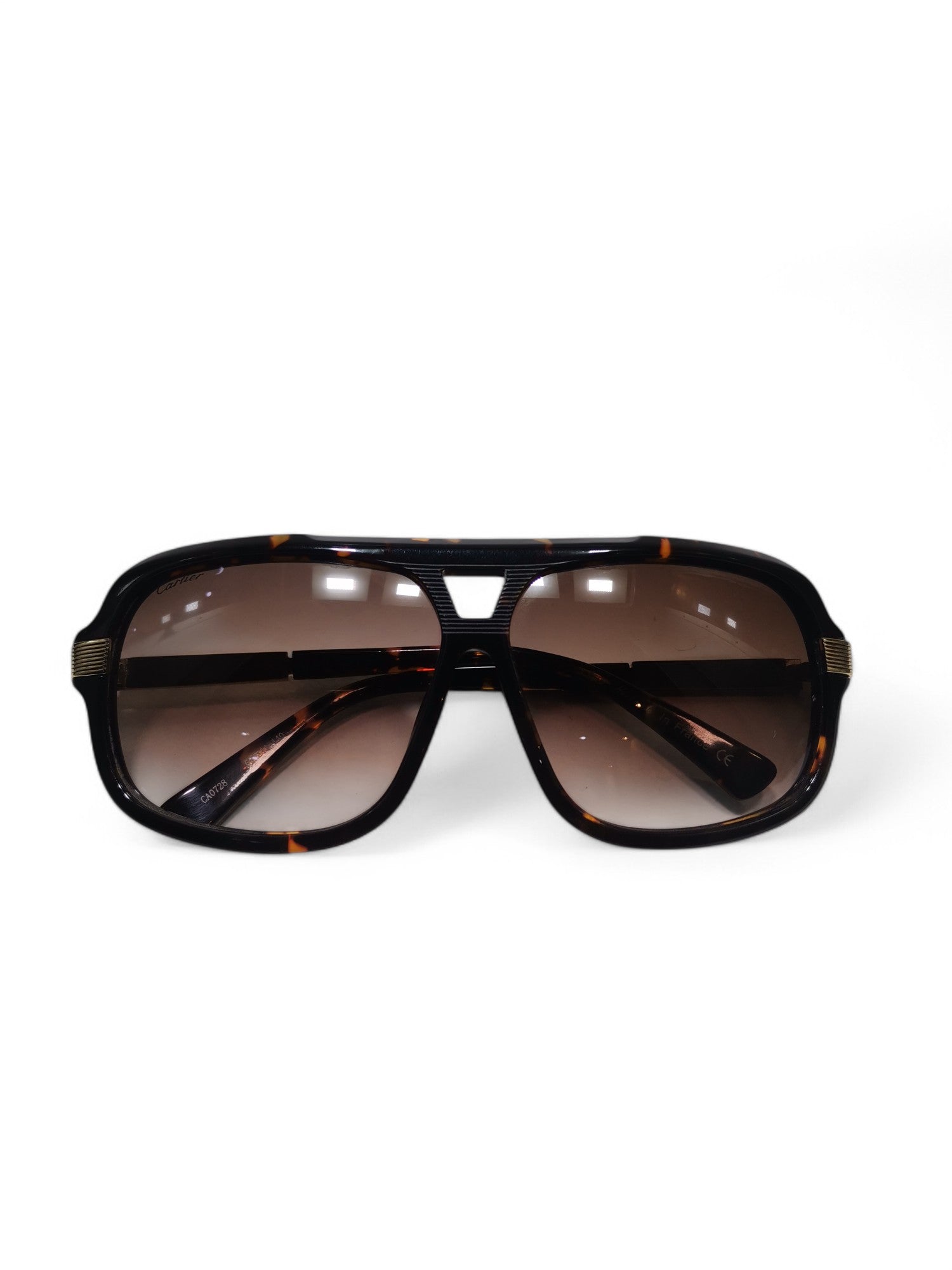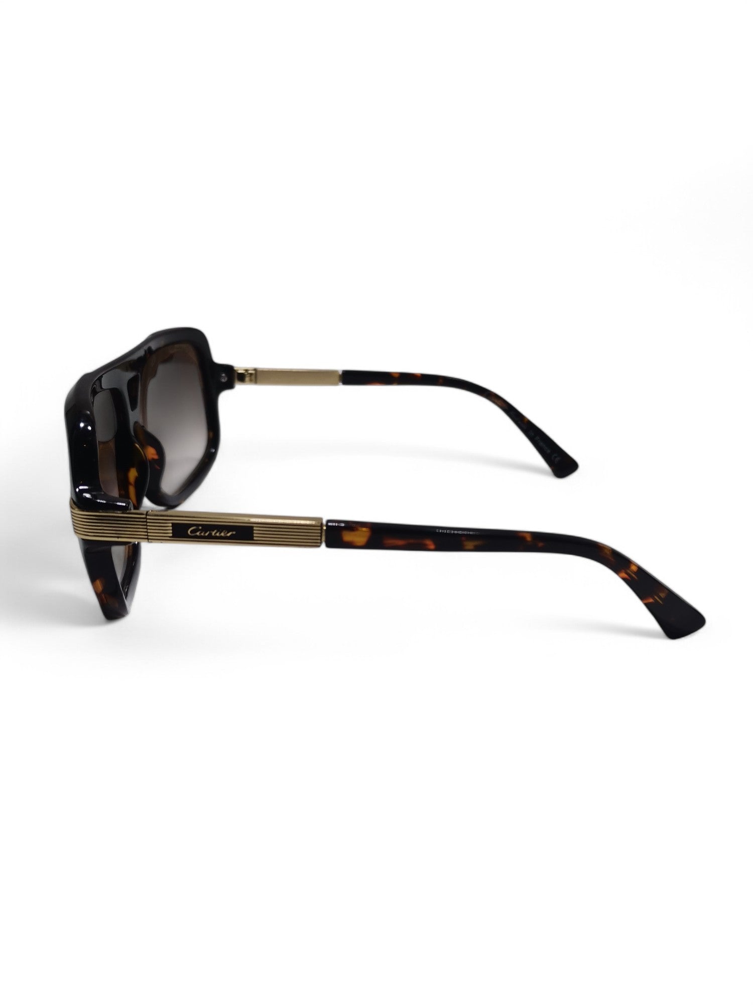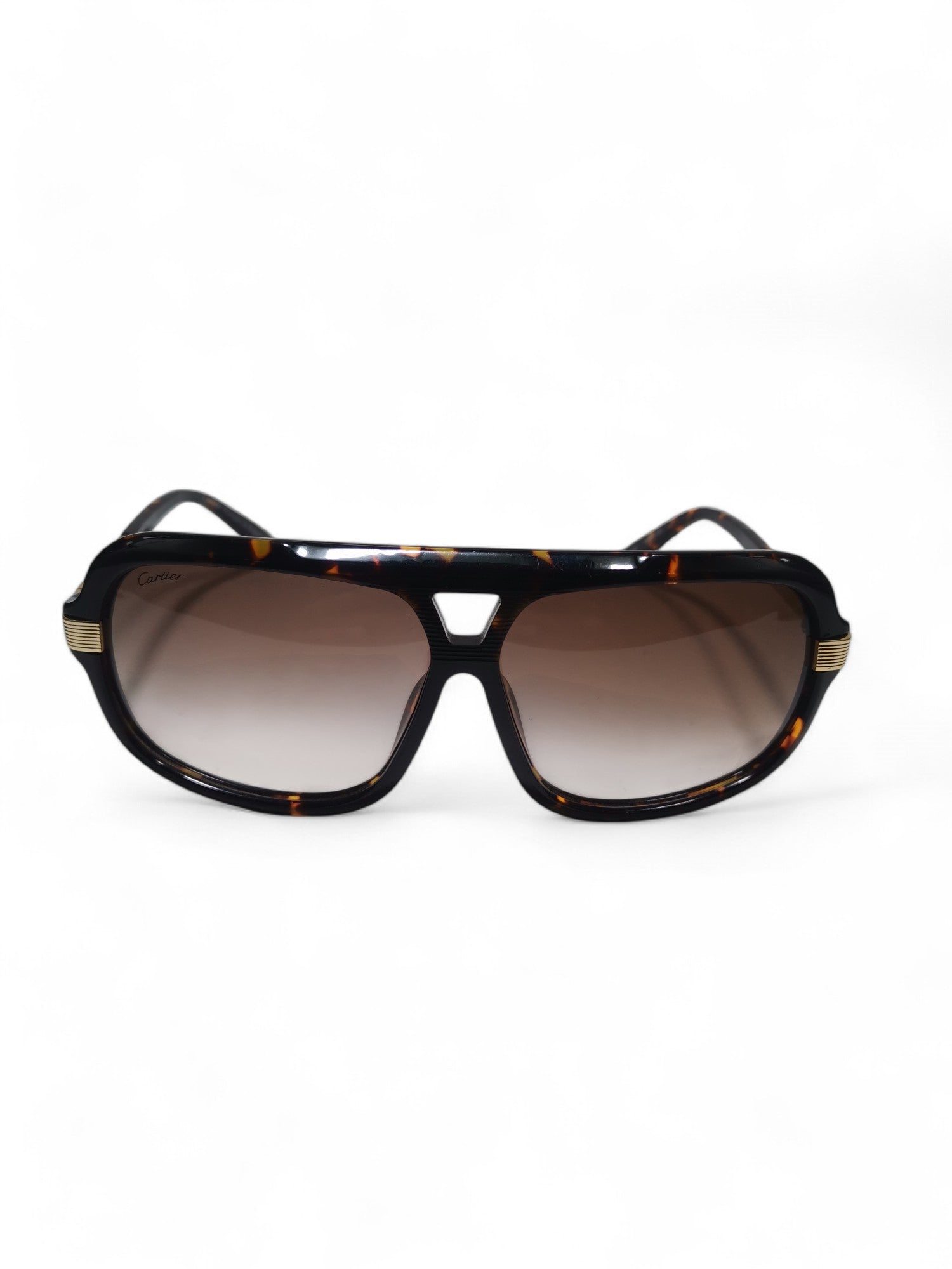 Experience luxury and sophistication with Cartier's Brown and Gold Metal/Plastic eyewear. The perfect combination of style and durability, these glasses are expertly crafted with high-quality materials. Elevate your look and protect your eyes with Cartier - the ultimate choice for the discerning individual.