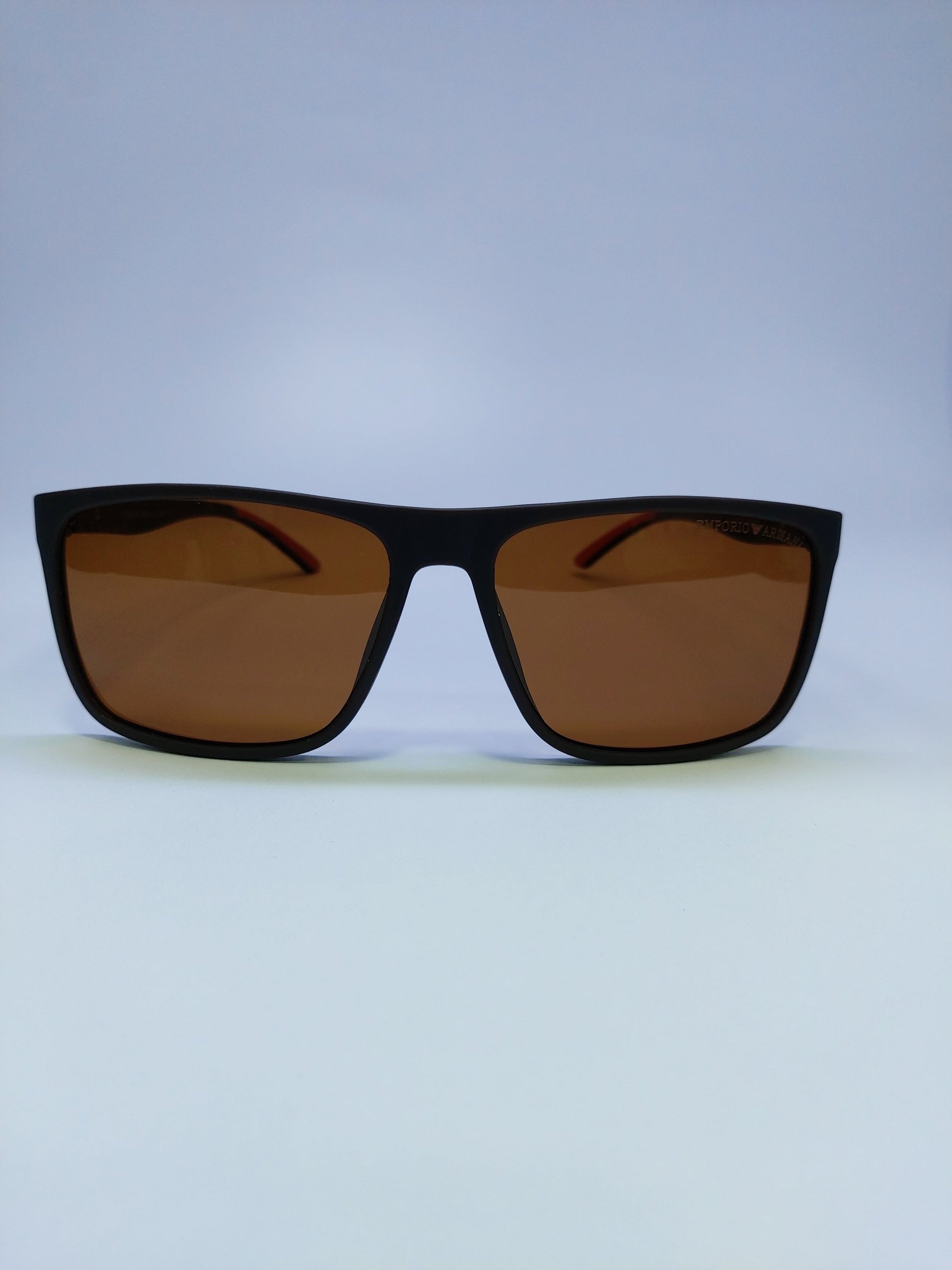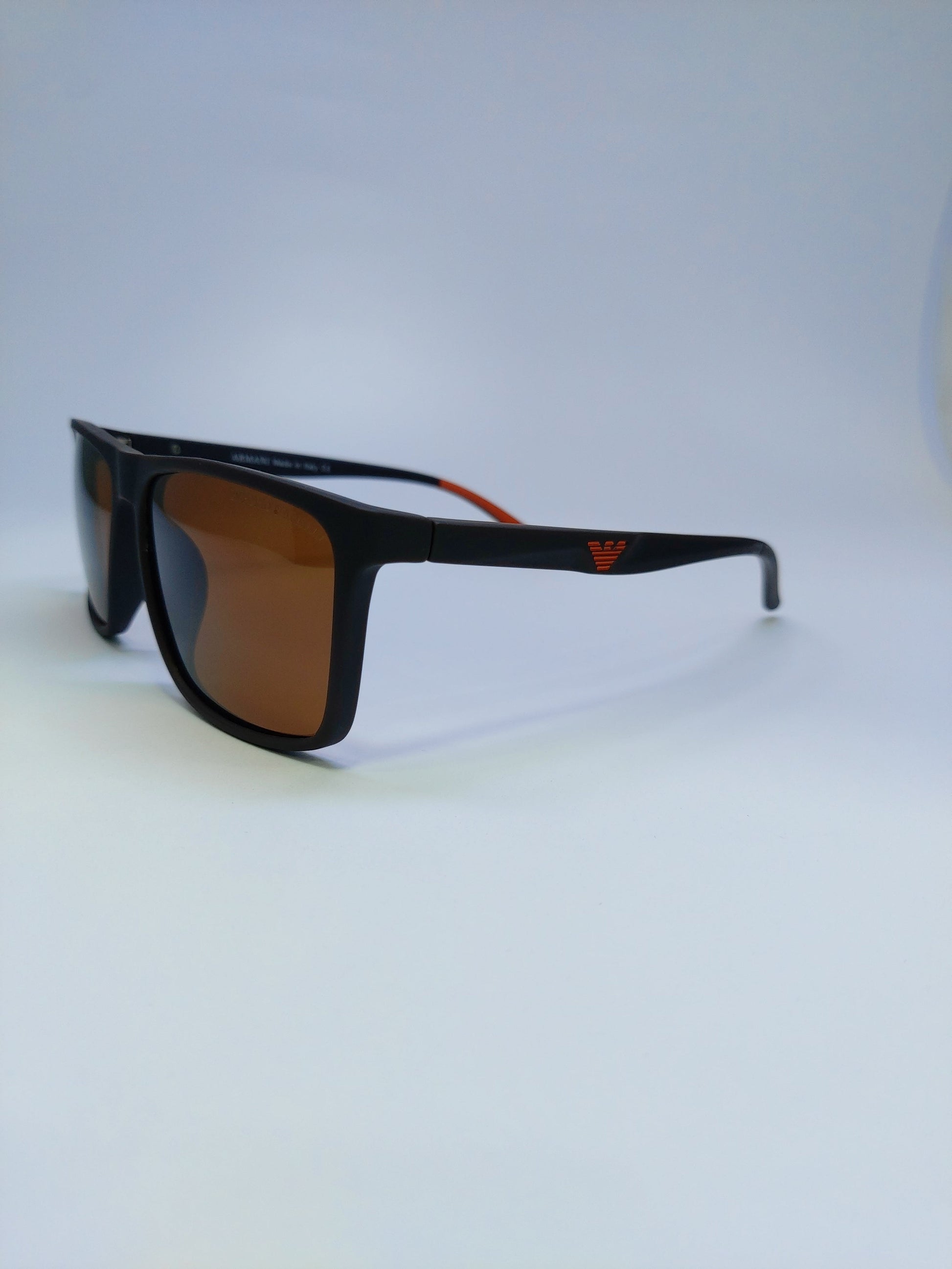 These Armani sunglasses feature a sleek brown frame with a pop of orange in the logo, made with durable plastic and acetate materials. Experience both style and quality with this must-have accessory.