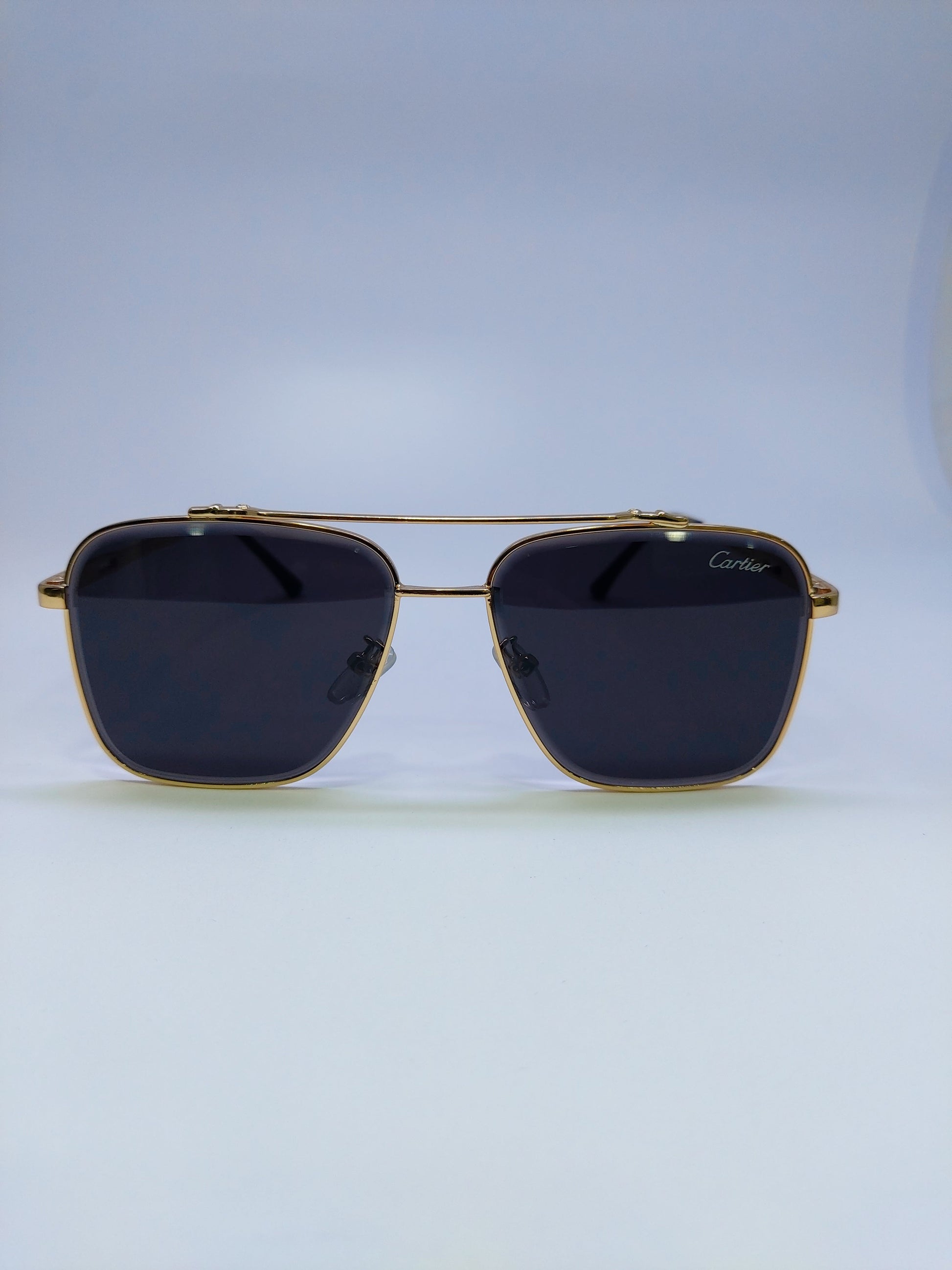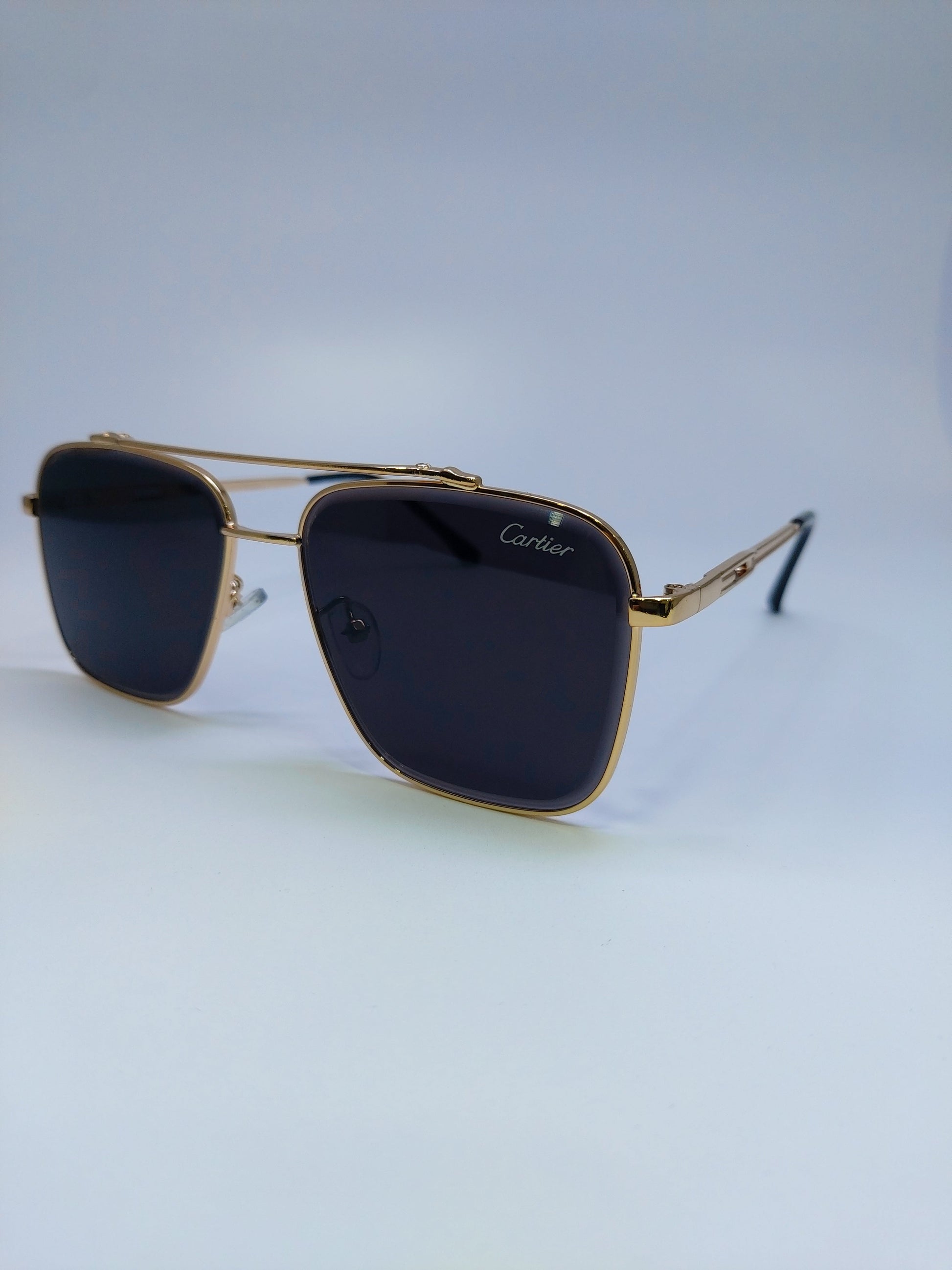 These Cartier sunglasses feature a sleek black and gold design with a metal frame. The perfect accessory for any stylish and sophisticated look. With high-quality craftsmanship and timeless style, these sunglasses are a must-have for any fashion-forward individual.