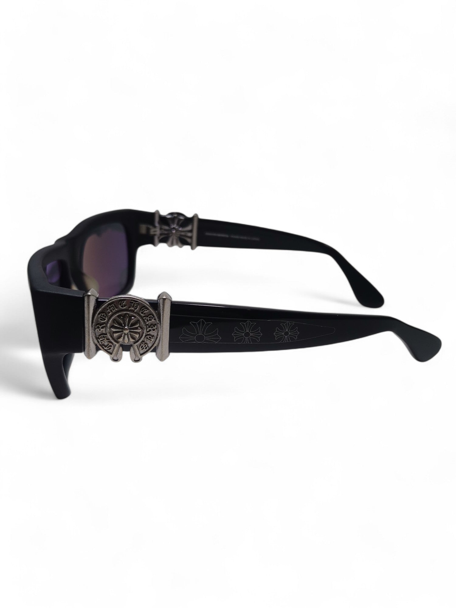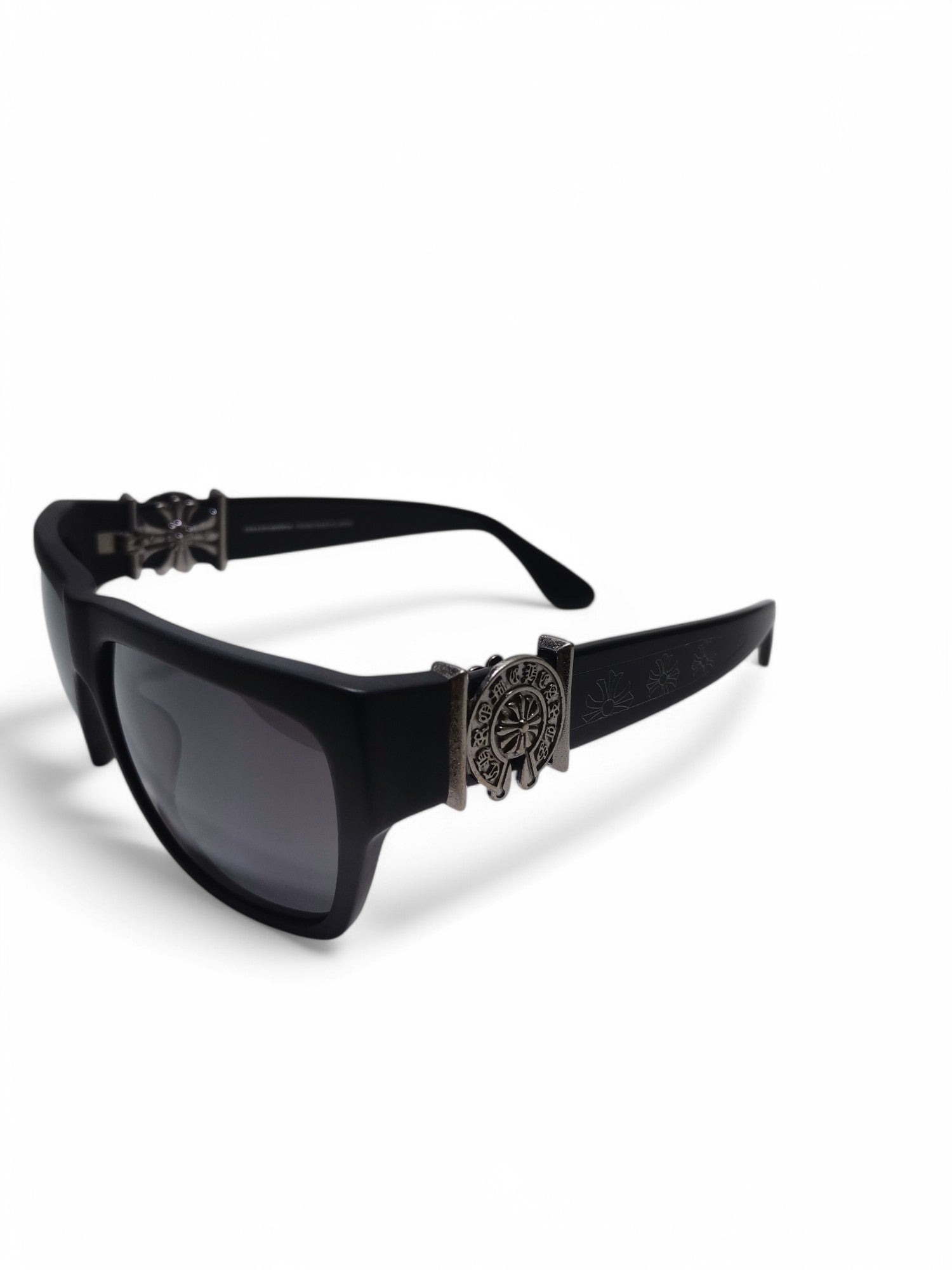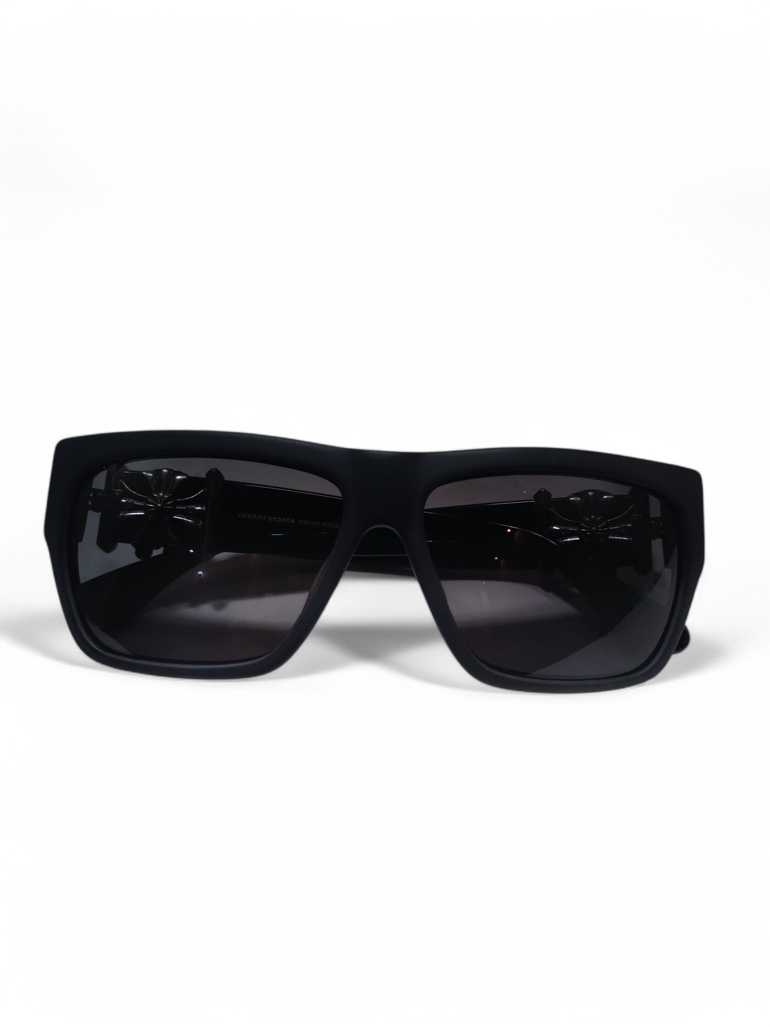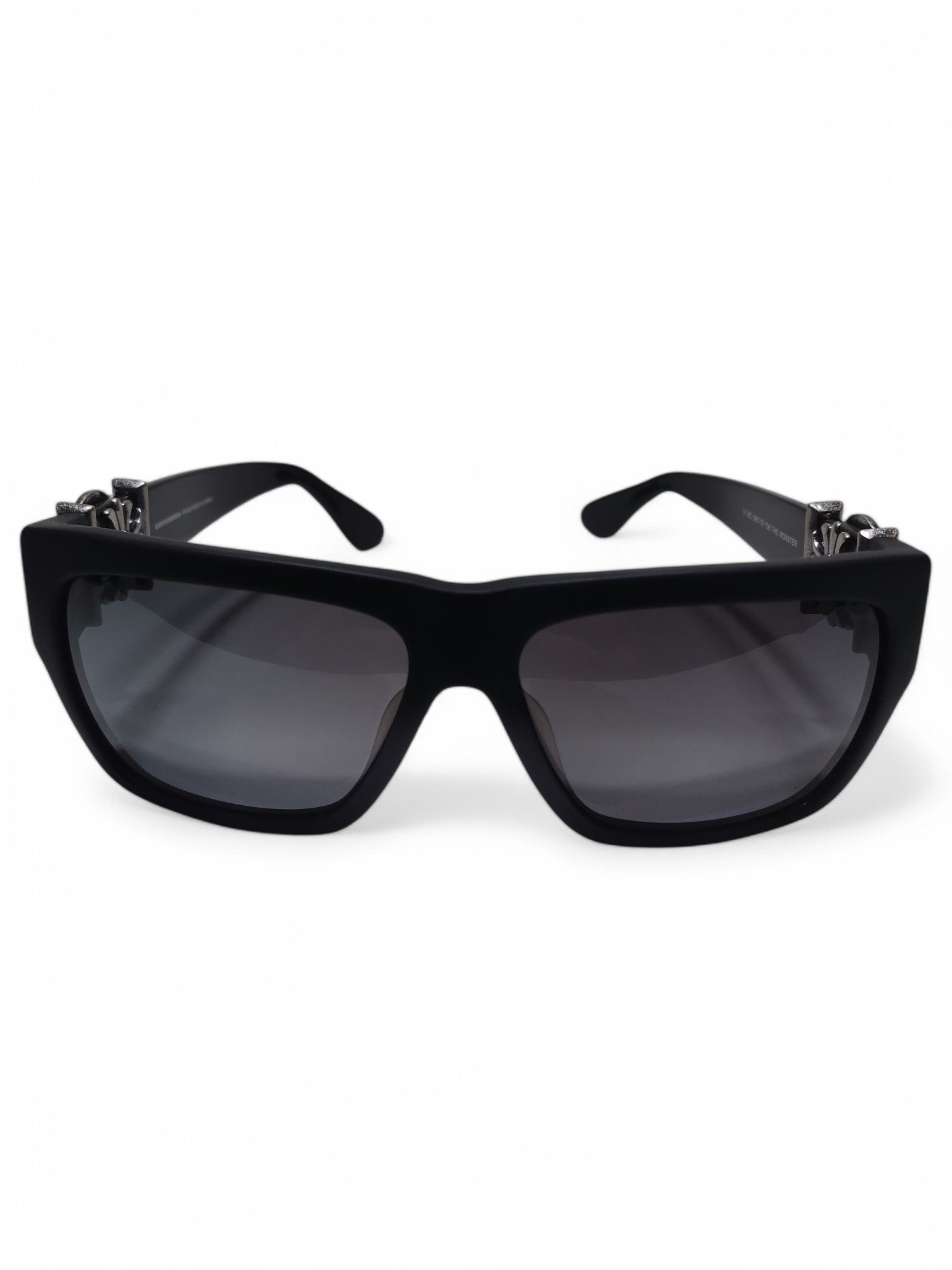 These Chrome Hearts - Black - Plastic sunglasses offer both style and protection with their sleek design and durable frame. Perfect for any occasion, these sunglasses provide 100% UV protection, ensuring your eyes are safe while making a statement. Elevate your look and protect your eyes with Chrome Hearts.