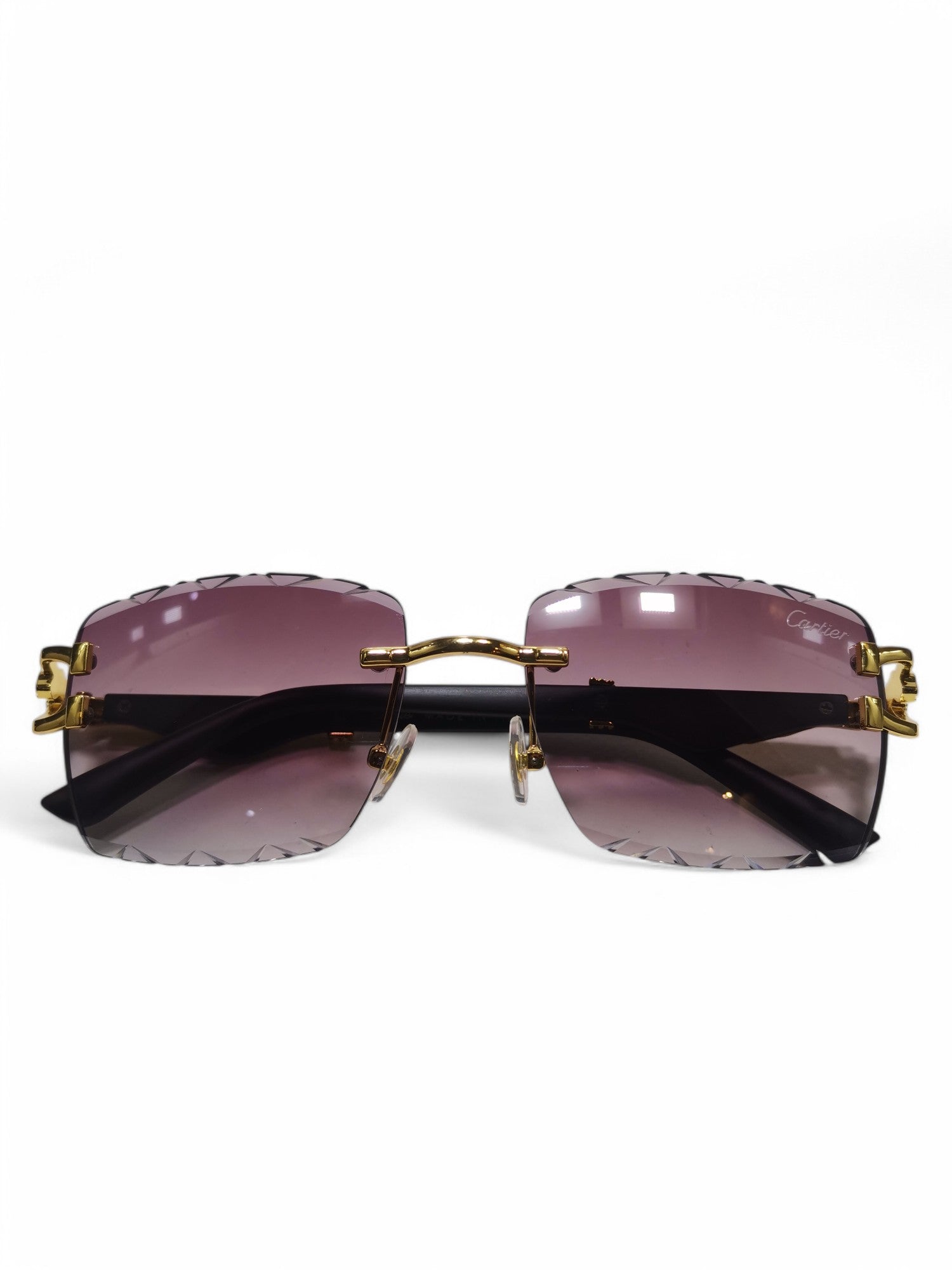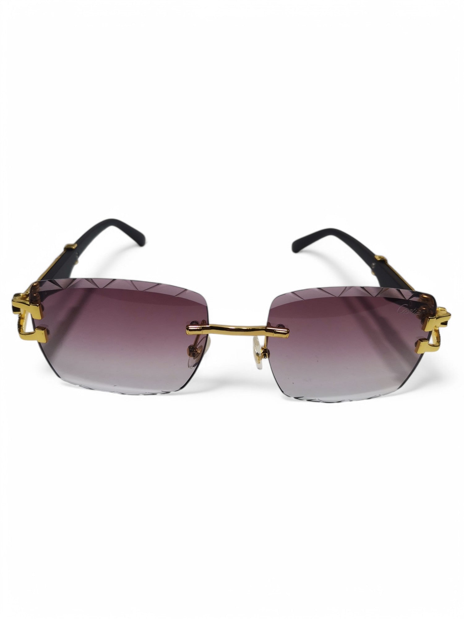 Experience luxurious style and ultimate UV protection with Cartier's Purple and Black Wood Side sunglasses. Crafted with high-quality materials, these sunglasses are the perfect blend of fashion and function. Stay trendy and protected with Cartier.