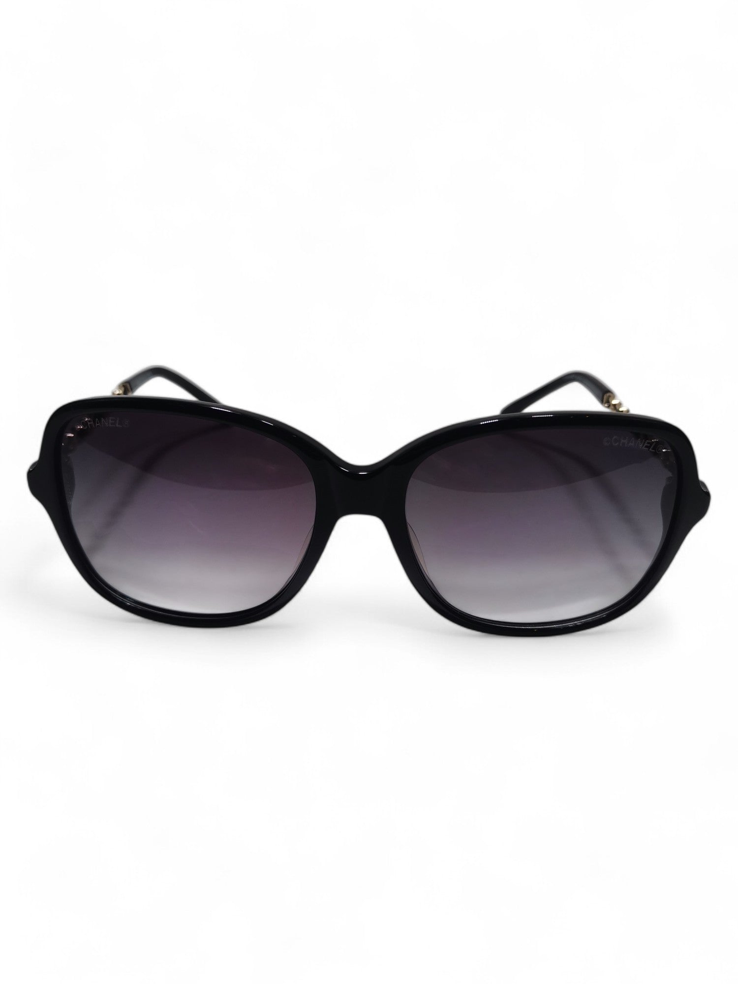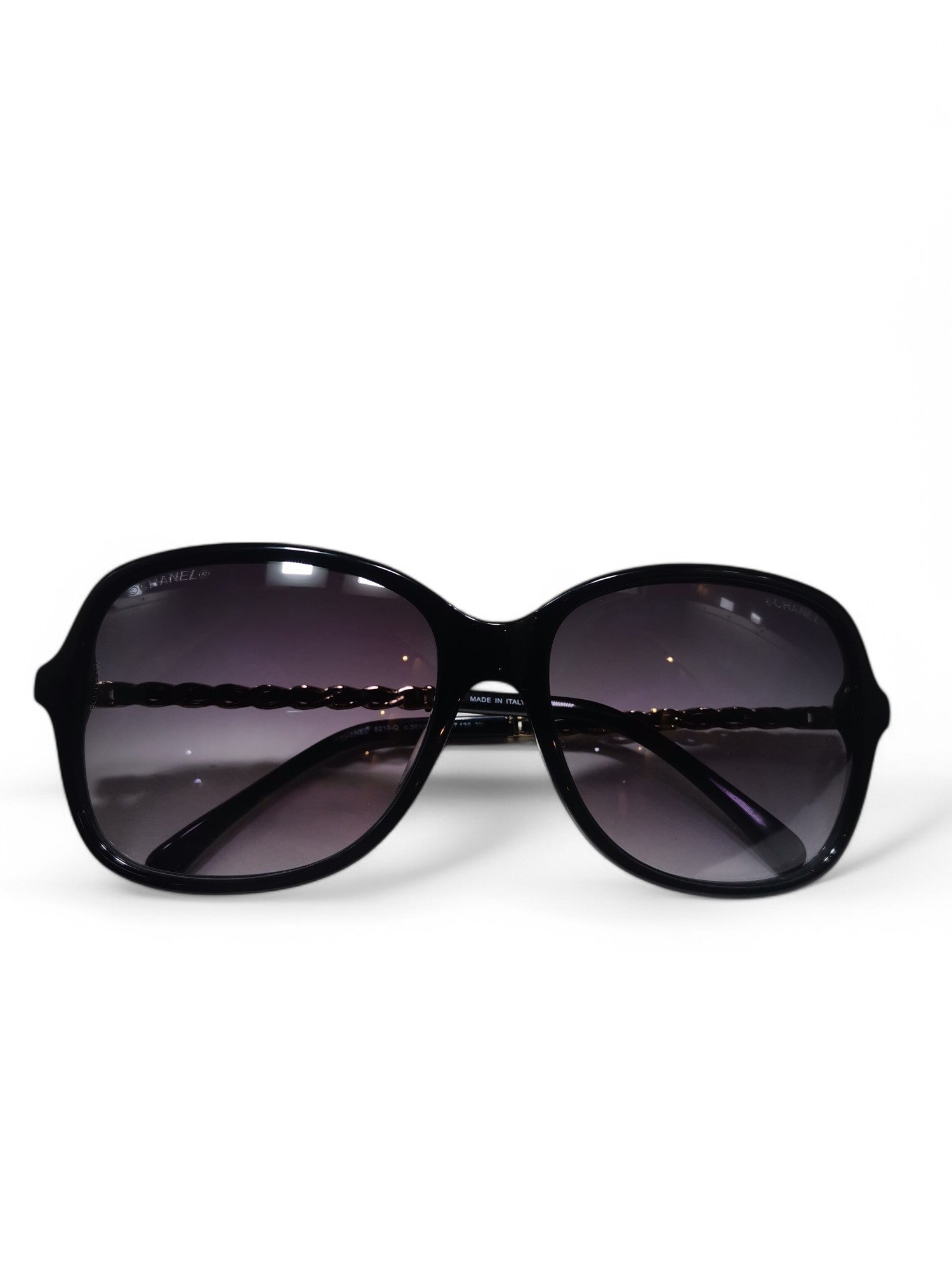Made by Chanel, these sleek black sunglasses are made with high-quality plastic and acetate materials for ultimate style and durability. With a professional and refined look, these shades provide UV protection and a comfortable fit. Elevate your outfit with these must-have designer sunglasses.
