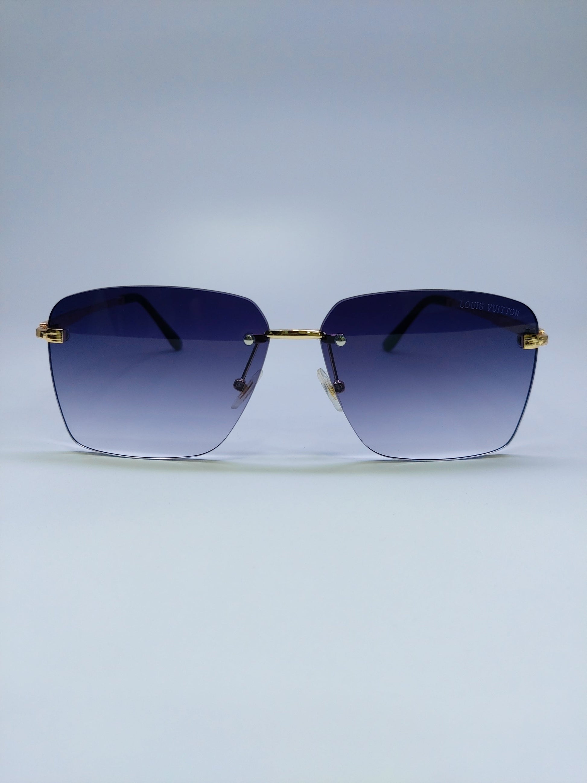 Experience luxury and style with Louis Vuitton Rimless Black and Gold sunglasses. These unisex sunglasses feature a sleek metal and plastic design, providing both durability and sophistication. Protect your eyes in style with this must-have accessory, perfect for any occasion.