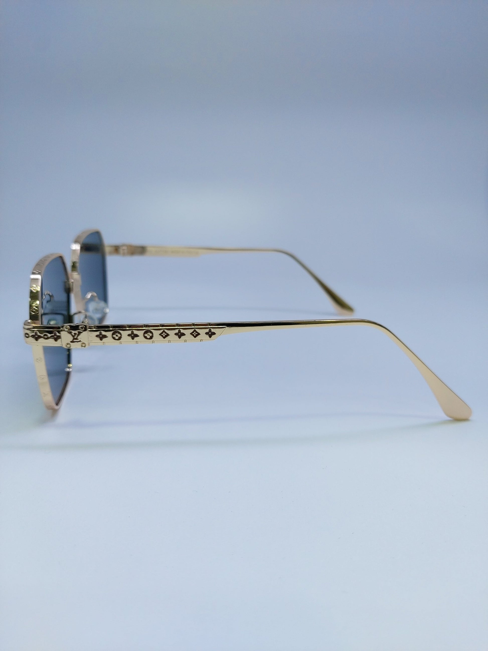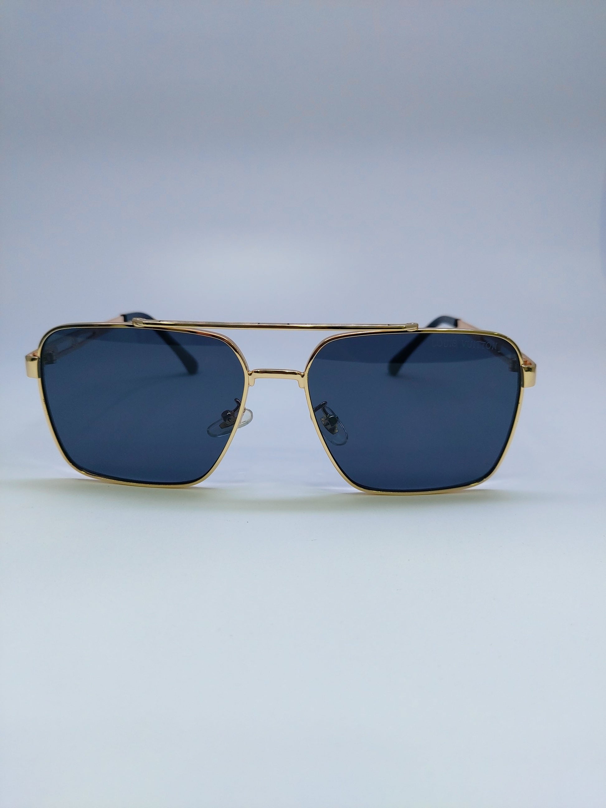 Expertly crafted by Louis Vuitton, these black and gold sunglasses are a stylish and durable addition to any wardrobe. Made with high-quality metal, these sunglasses offer 100% UV protection and a timeless design that will elevate any look. Elevate your style with Louis Vuitton.