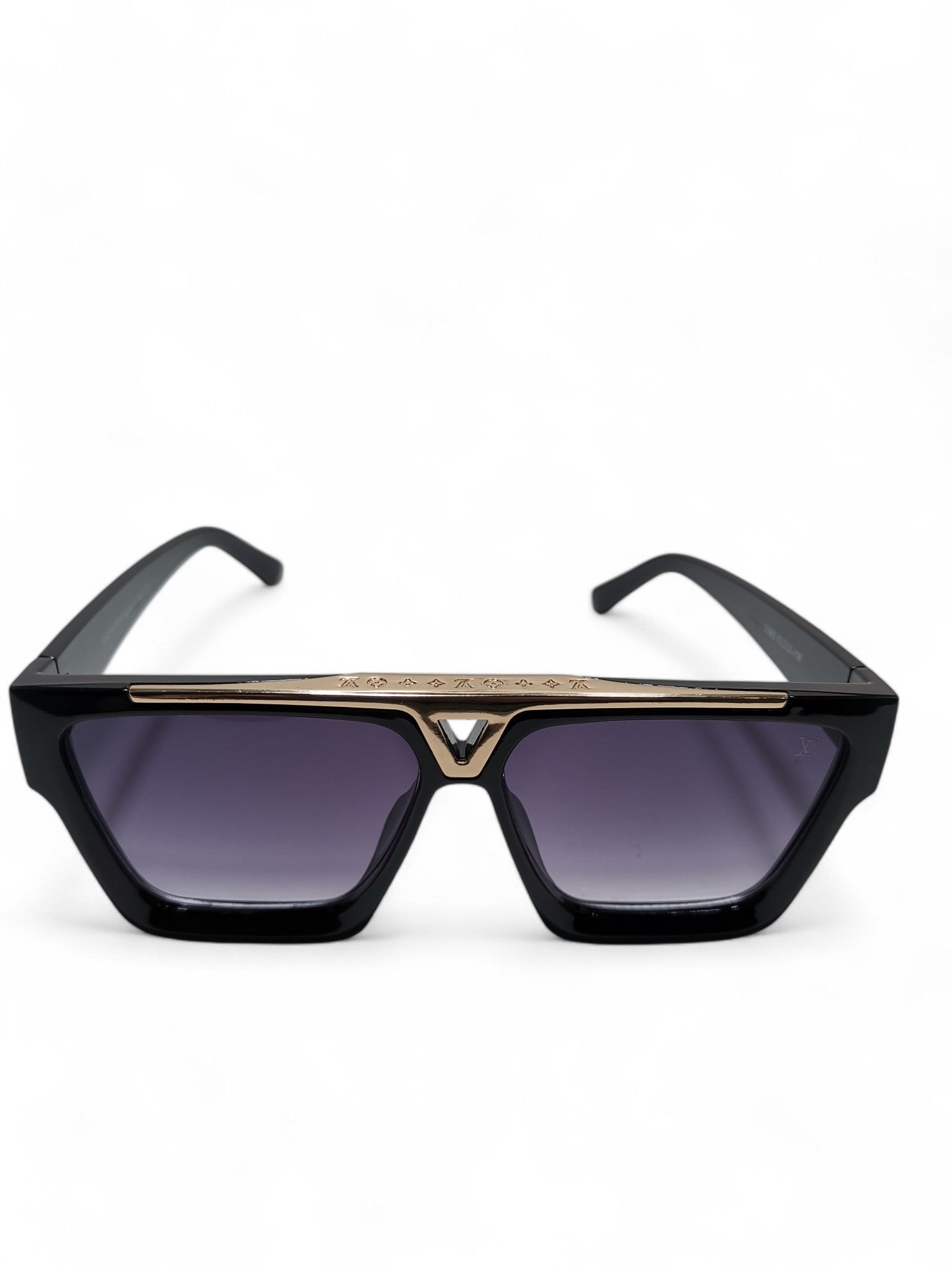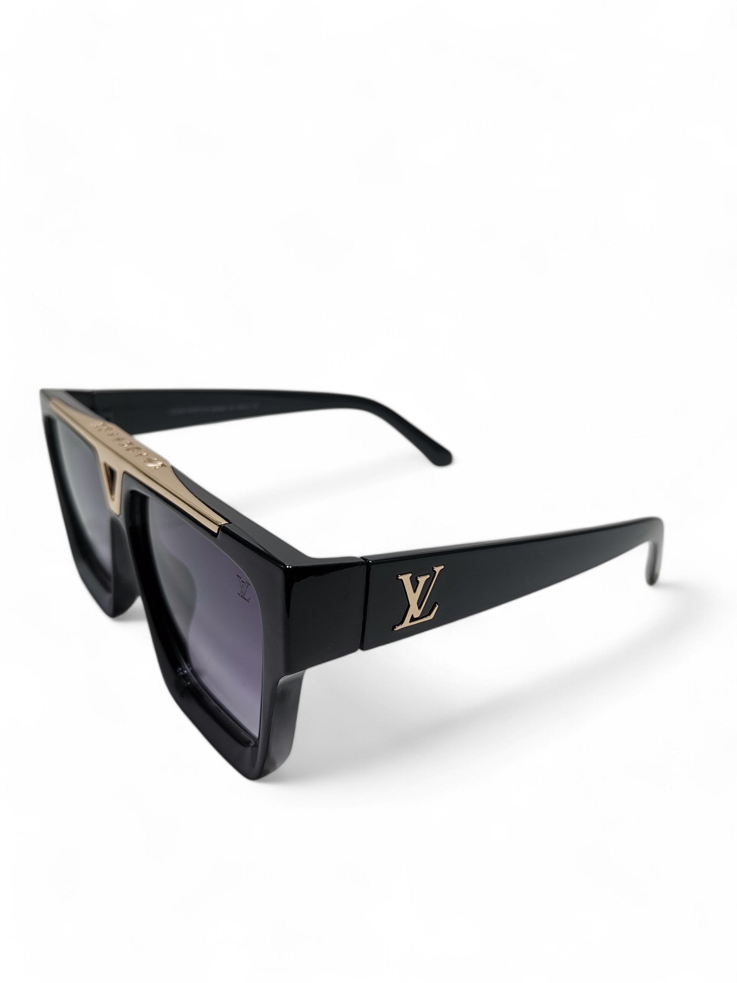 Experience luxury and style with the Louis Vuitton Black and Gold Sunglasses. Made with high-quality plastic and acetate, these sunglasses offer both durability and elegance. Elevate any outfit with its sophisticated design and protect your eyes with 100% UV protection.