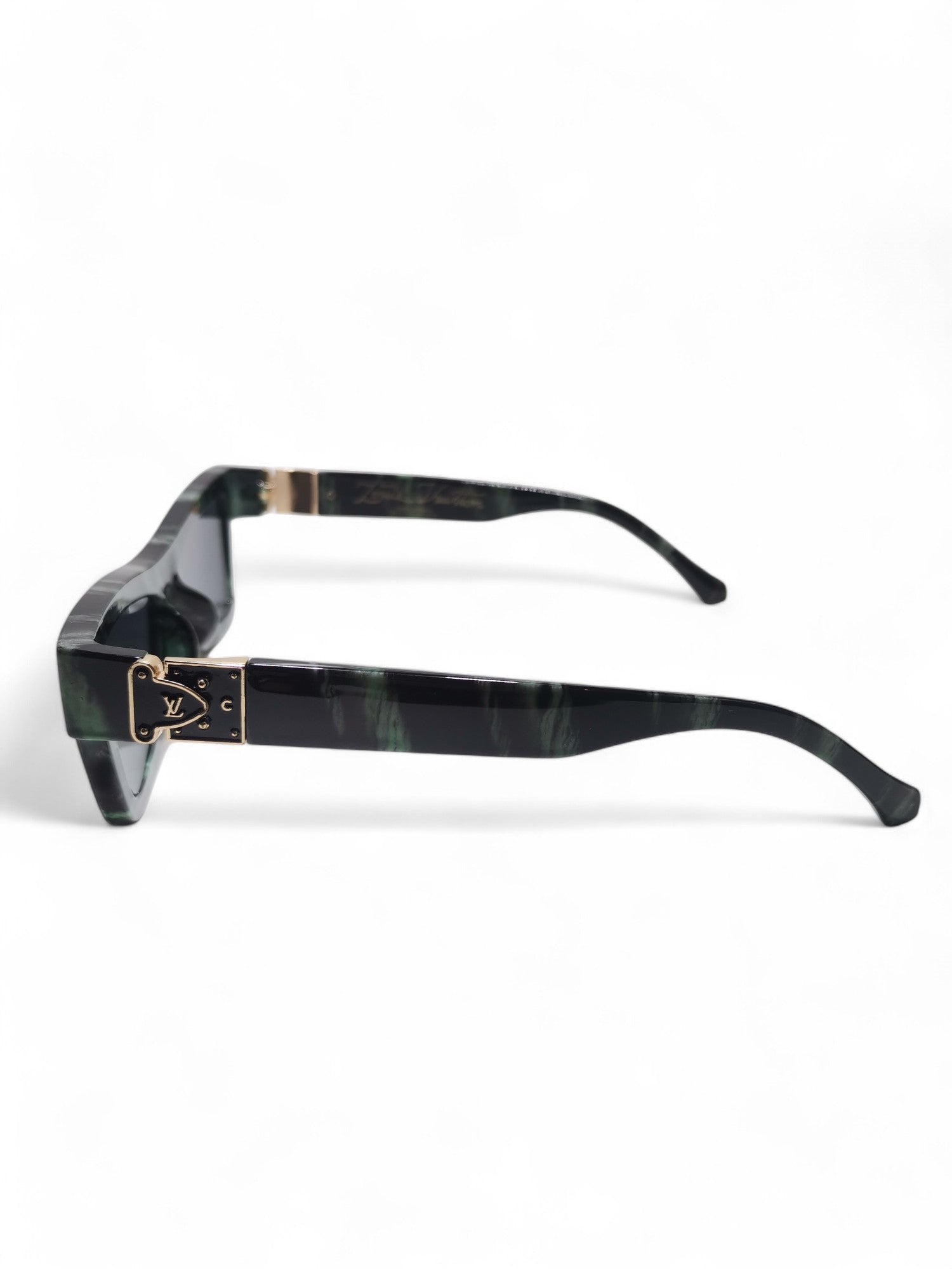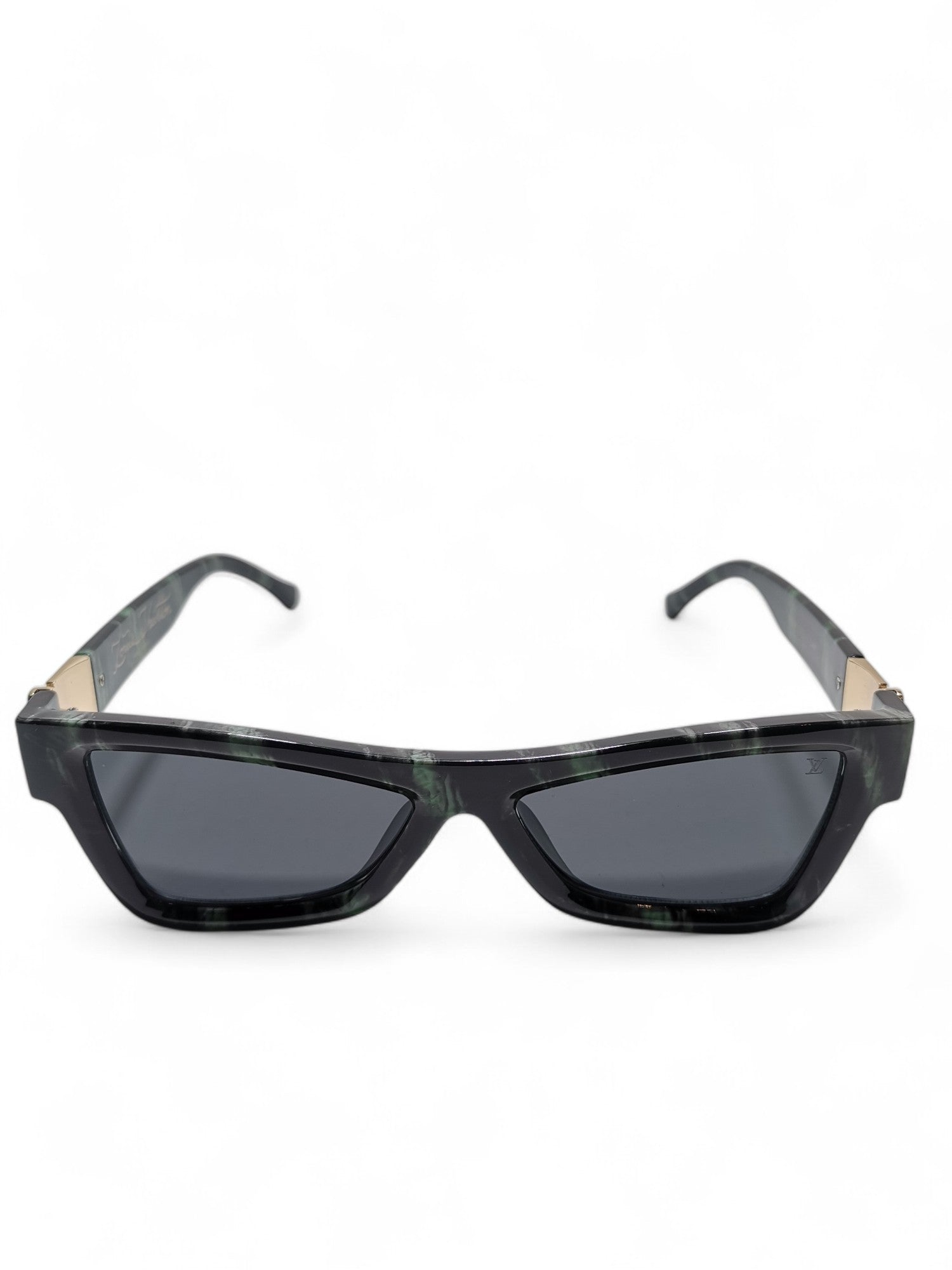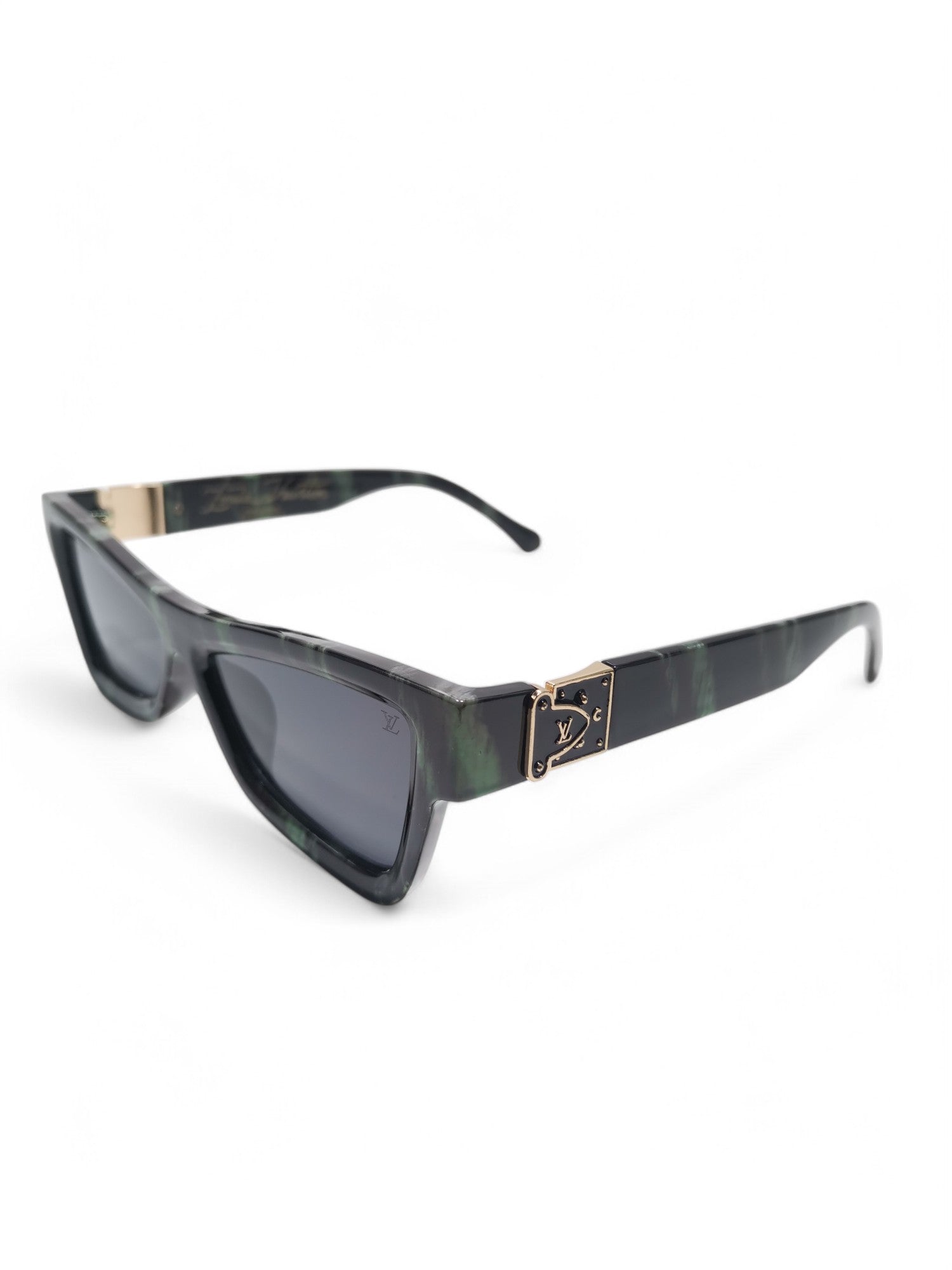 These Louis Vuitton sunglasses feature a sleek black and green design, made with high-quality plastic and acetate materials. With expert craftsmanship and luxurious style, these sunglasses are the perfect accessory for any fashion-forward individual. Protect your eyes in style with Louis Vuitton.