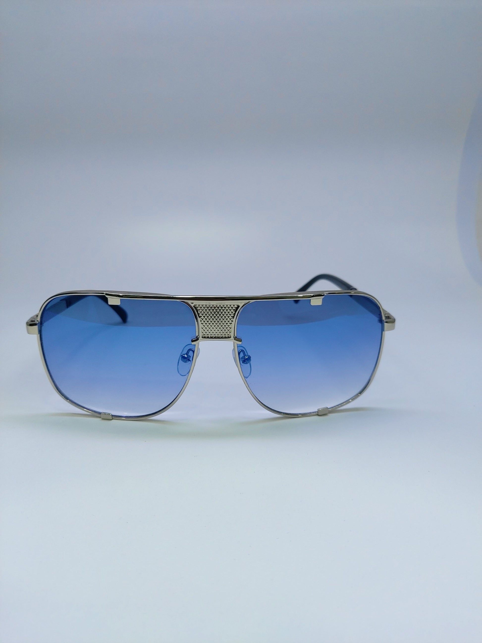 These Louis Vuitton sunglasses feature a sleek blue and silver metal frame. Crafted with expert precision and high-quality materials, they provide both style and durability. Perfect for any occasion, these sunglasses are a must-have for anyone looking to elevate their fashion game with a touch of luxury.