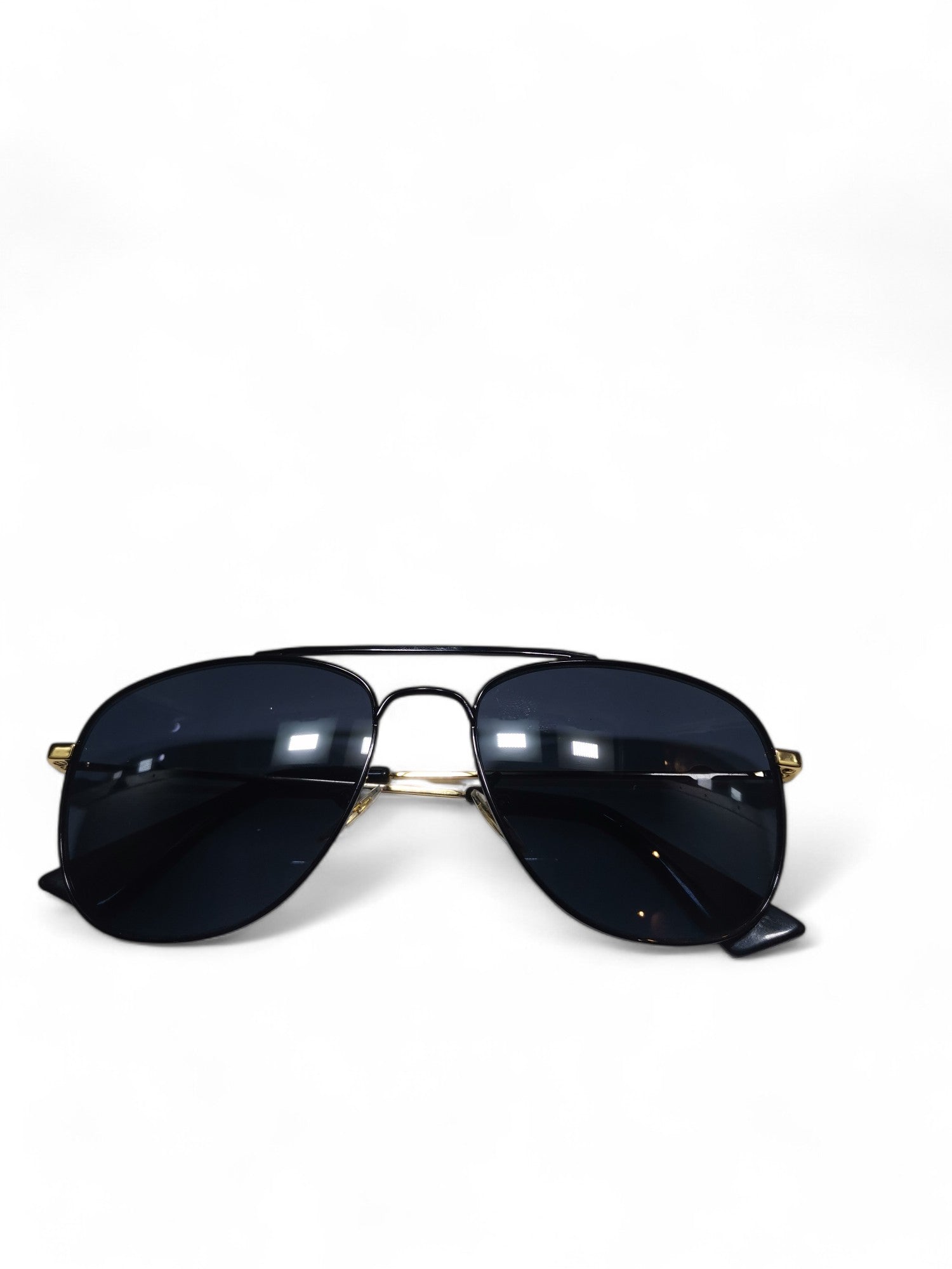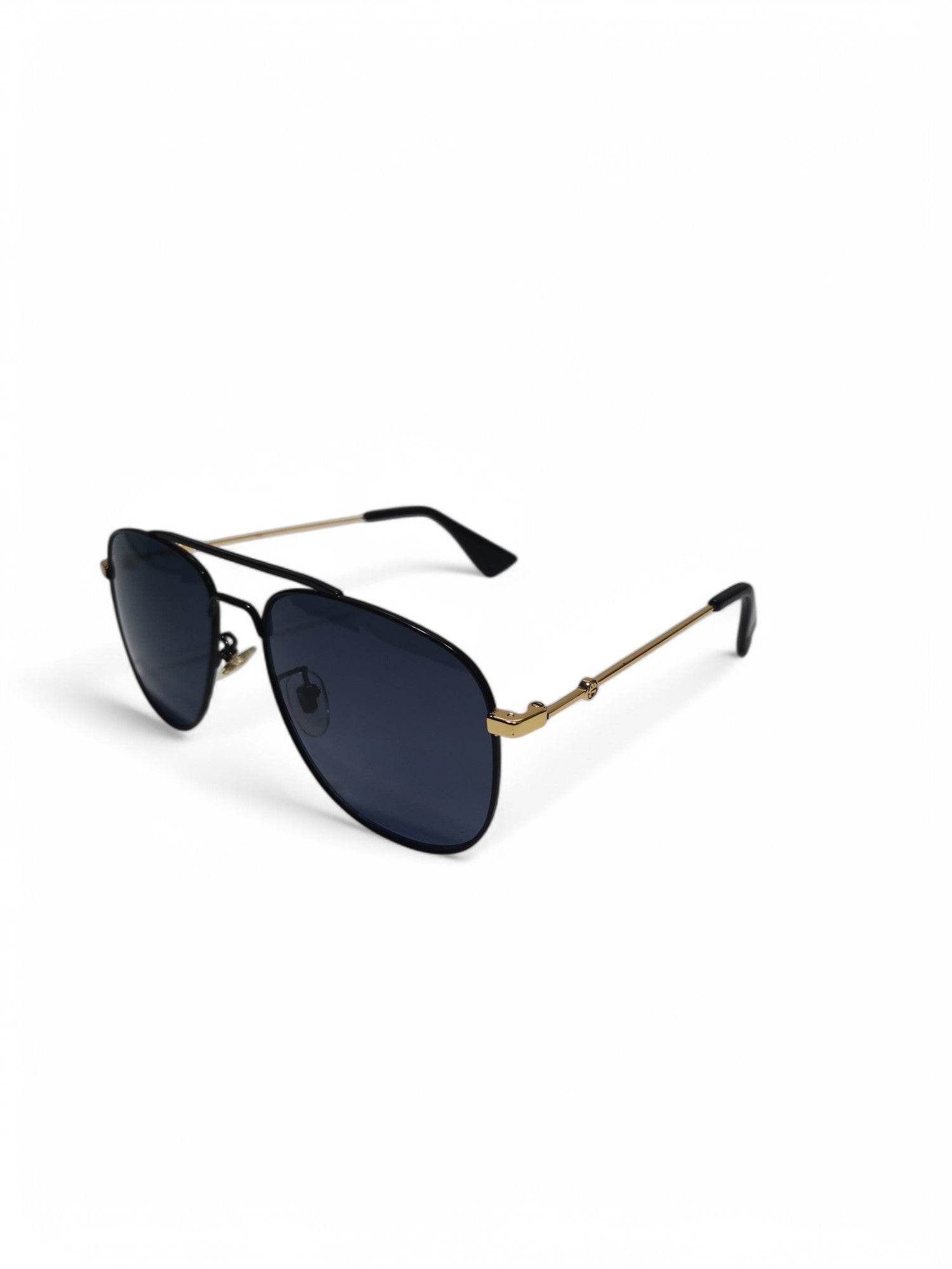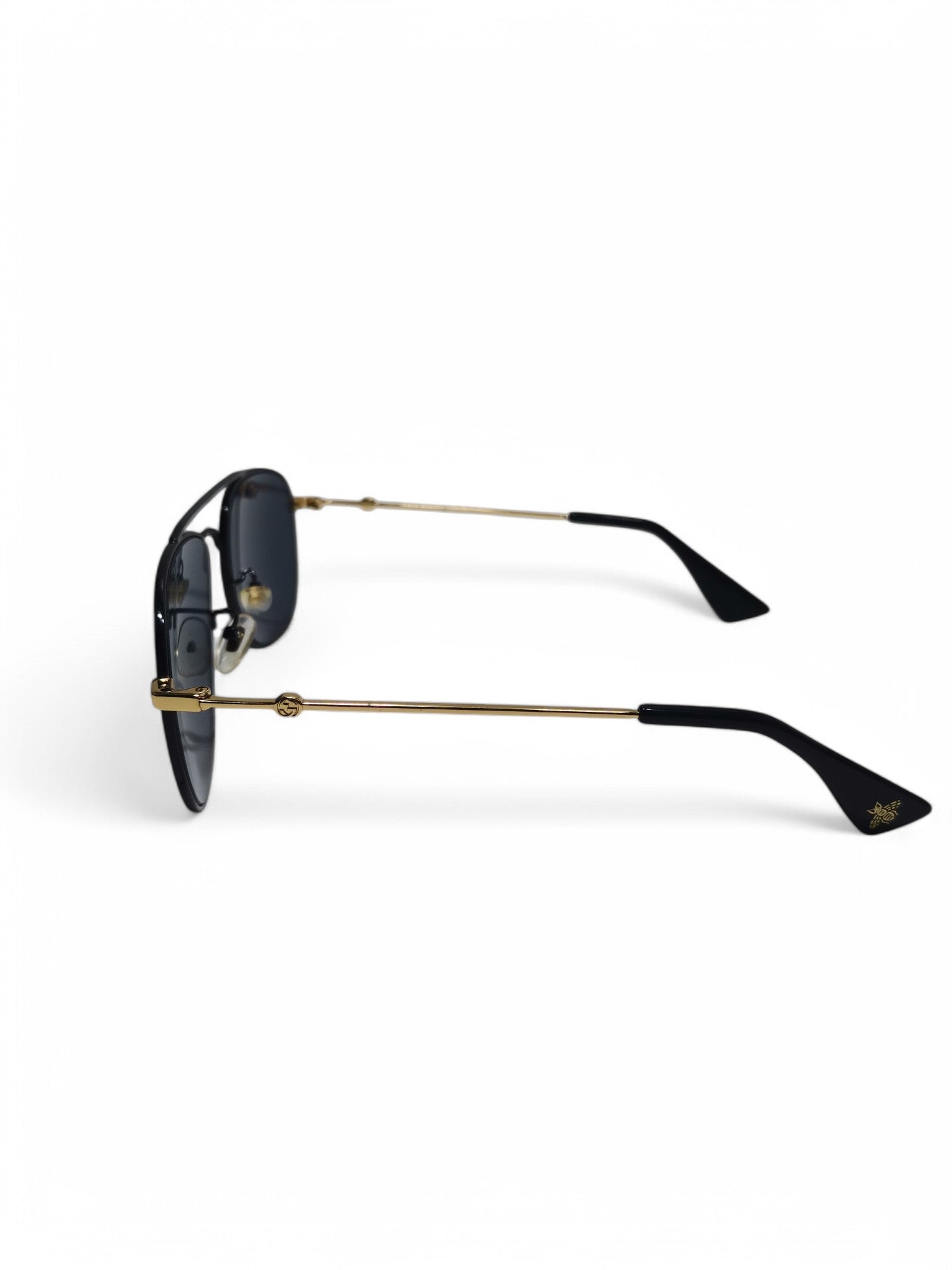 These sleek and stylish Gucci sunglasses feature a black and gold design, crafted from a durable blend of metal and plastic. Elevate your look with these expertly crafted sunglasses that offer both fashion and function.