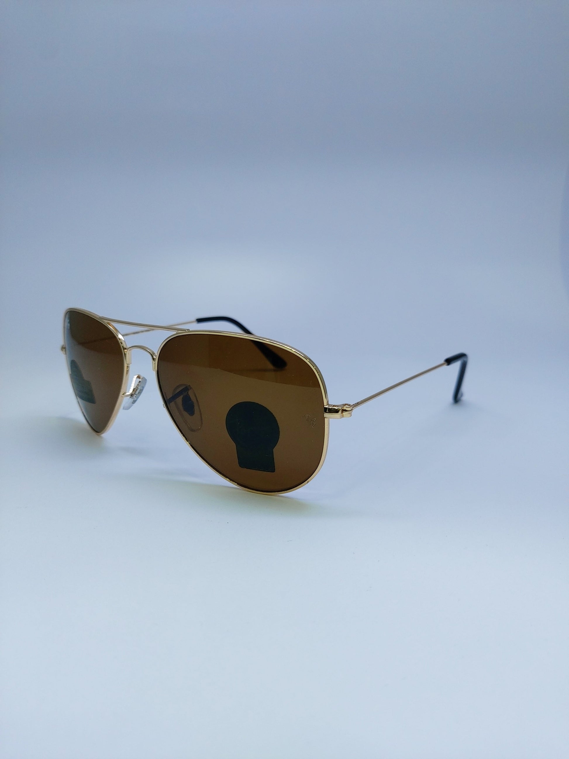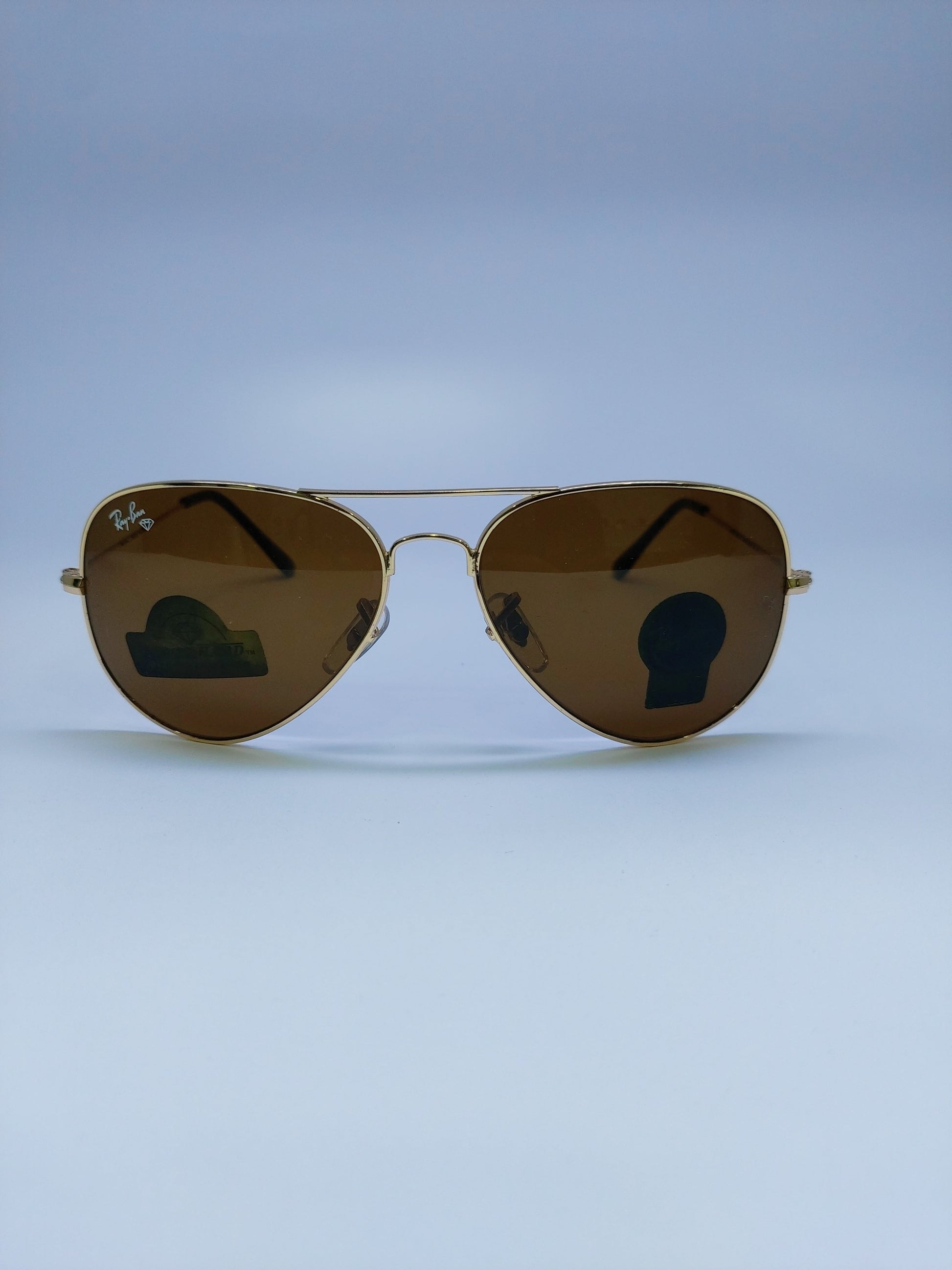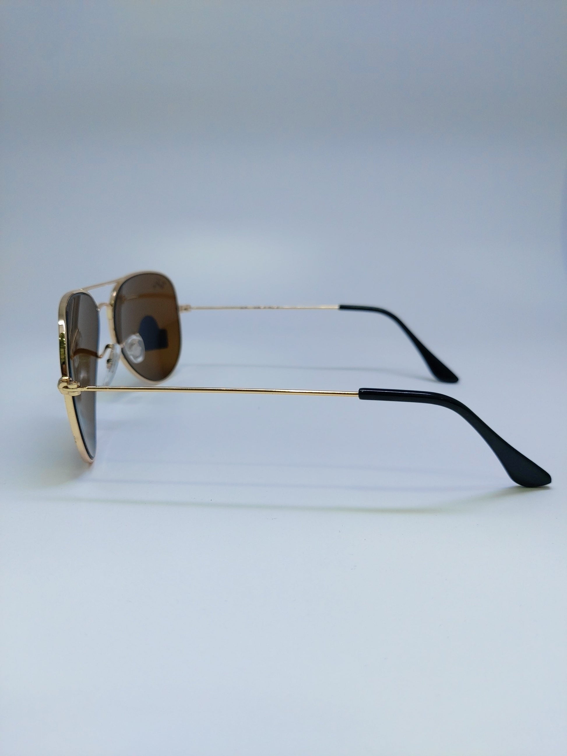 These Rayban classical sunglasses feature a sleek brown and gold metal design. Made with expert craftsmanship, they offer a professional, stylish look. Enjoy the benefits of UV protection and the durability of high-quality materials. Perfect for any occasion, these sunglasses are a must-have for any fashion-forward individual.