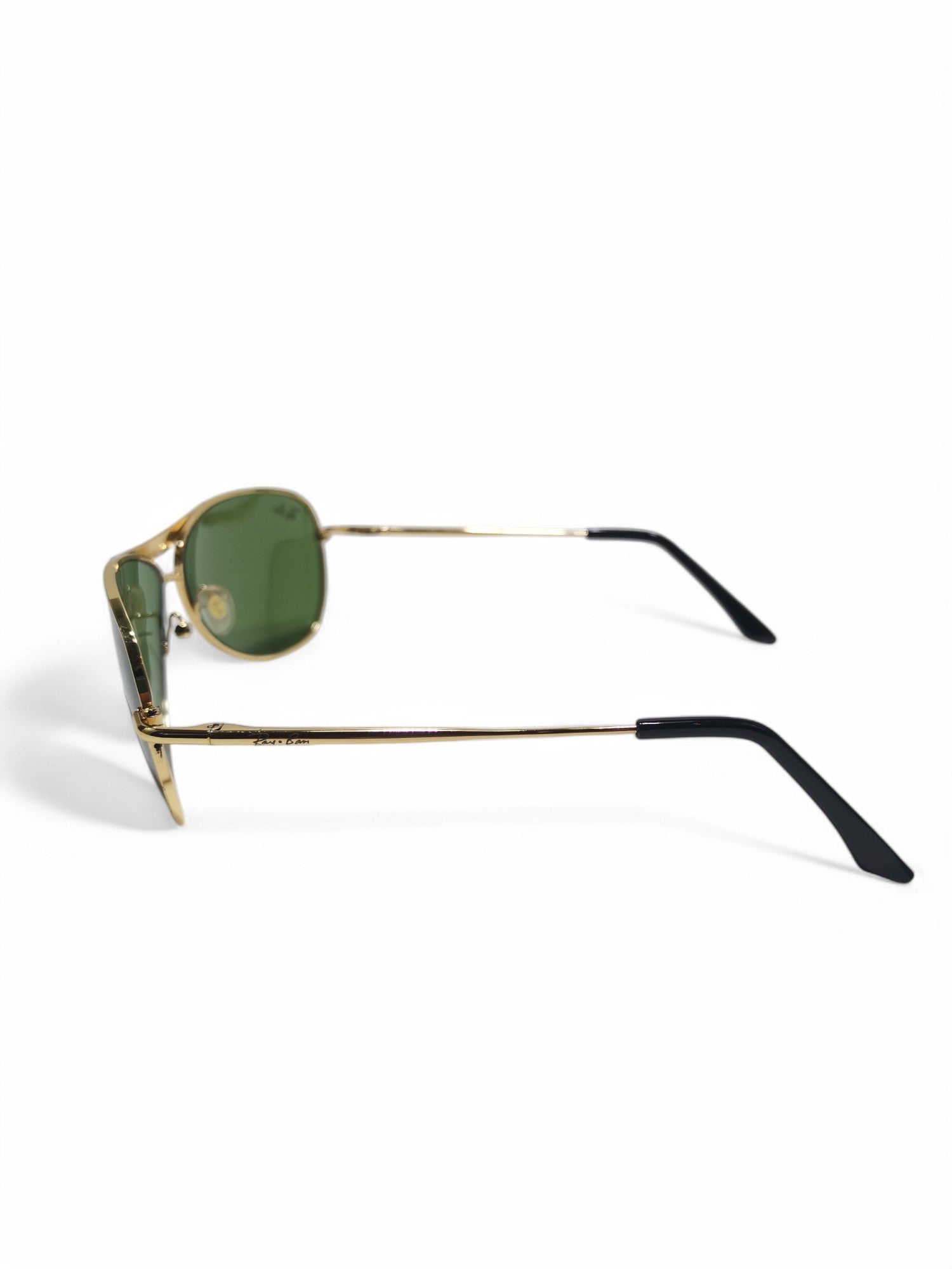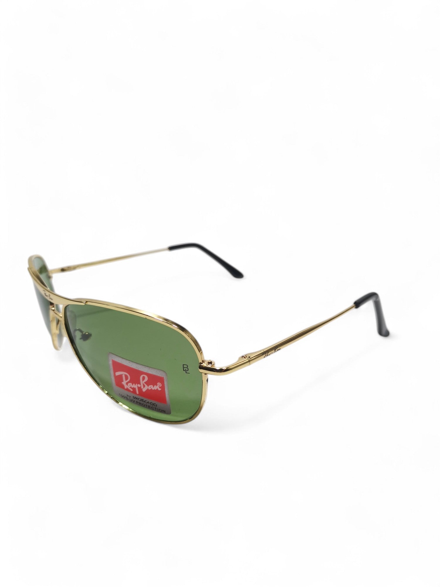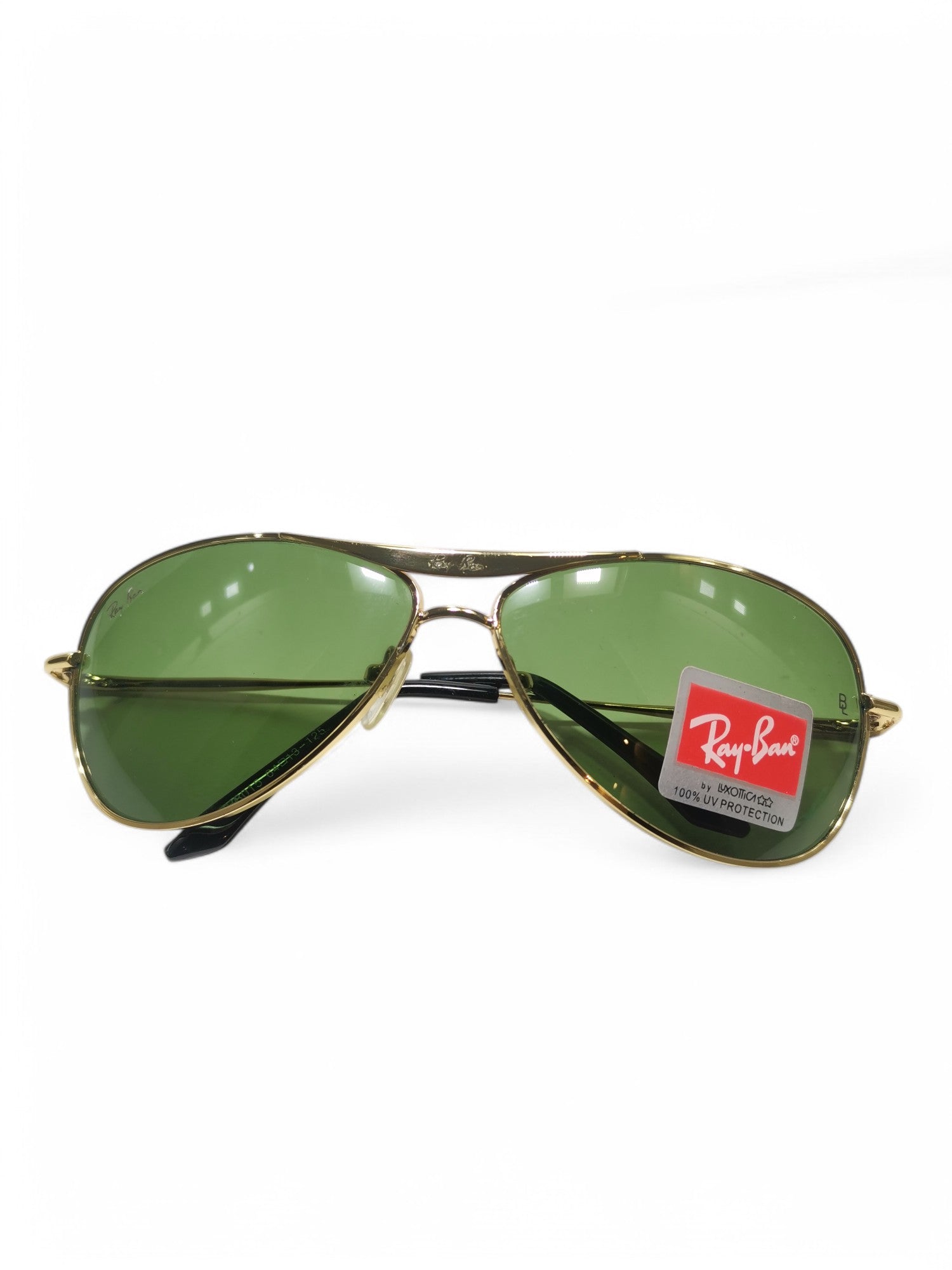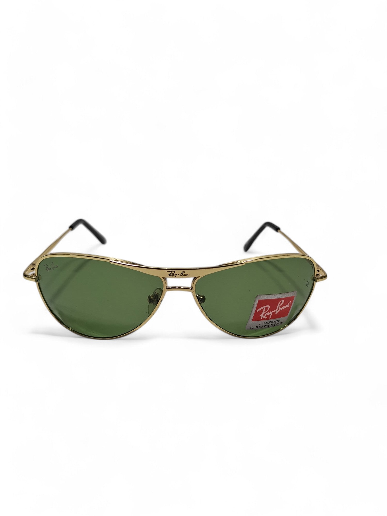 These RayBan sunglasses feature a sleek green and gold metal design. Expertly crafted from high-quality materials, these sunglasses provide superior sun protection while adding a stylish touch to any outfit. With RayBan's reputation for excellence, you can trust in the durability and functionality of these sunglasses.